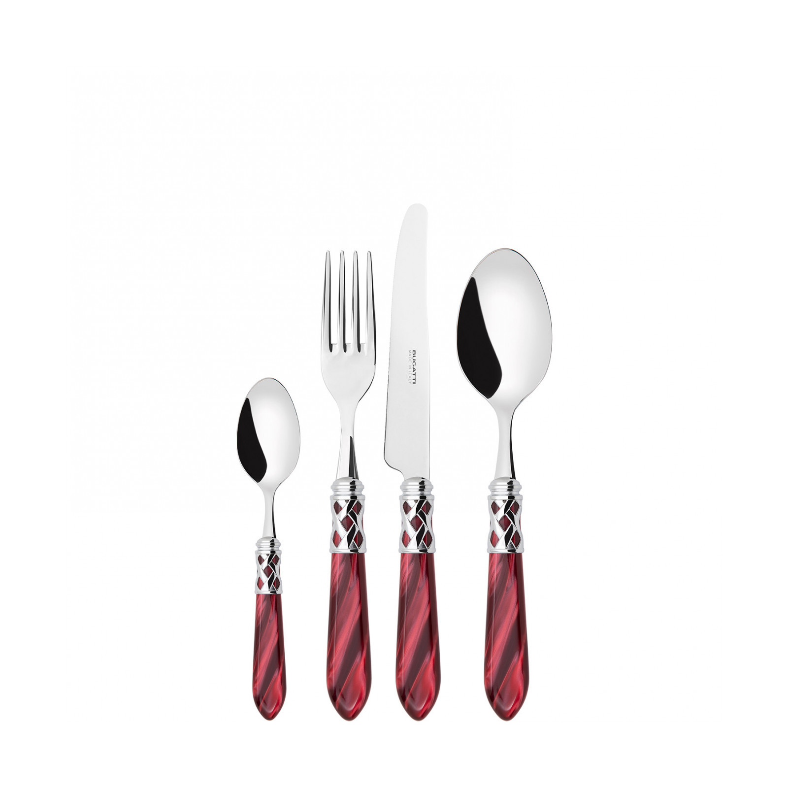The coloured Aladdin Shining Ring cutlery range was created to bring magic and performance to your table. Each individual piece is made with meticulous care. Made of 18/10 stainless steel, each features an elegant acrylic handle combined with a refined braided ring with a polished steel finish. This cutlery is dishwasher safe.