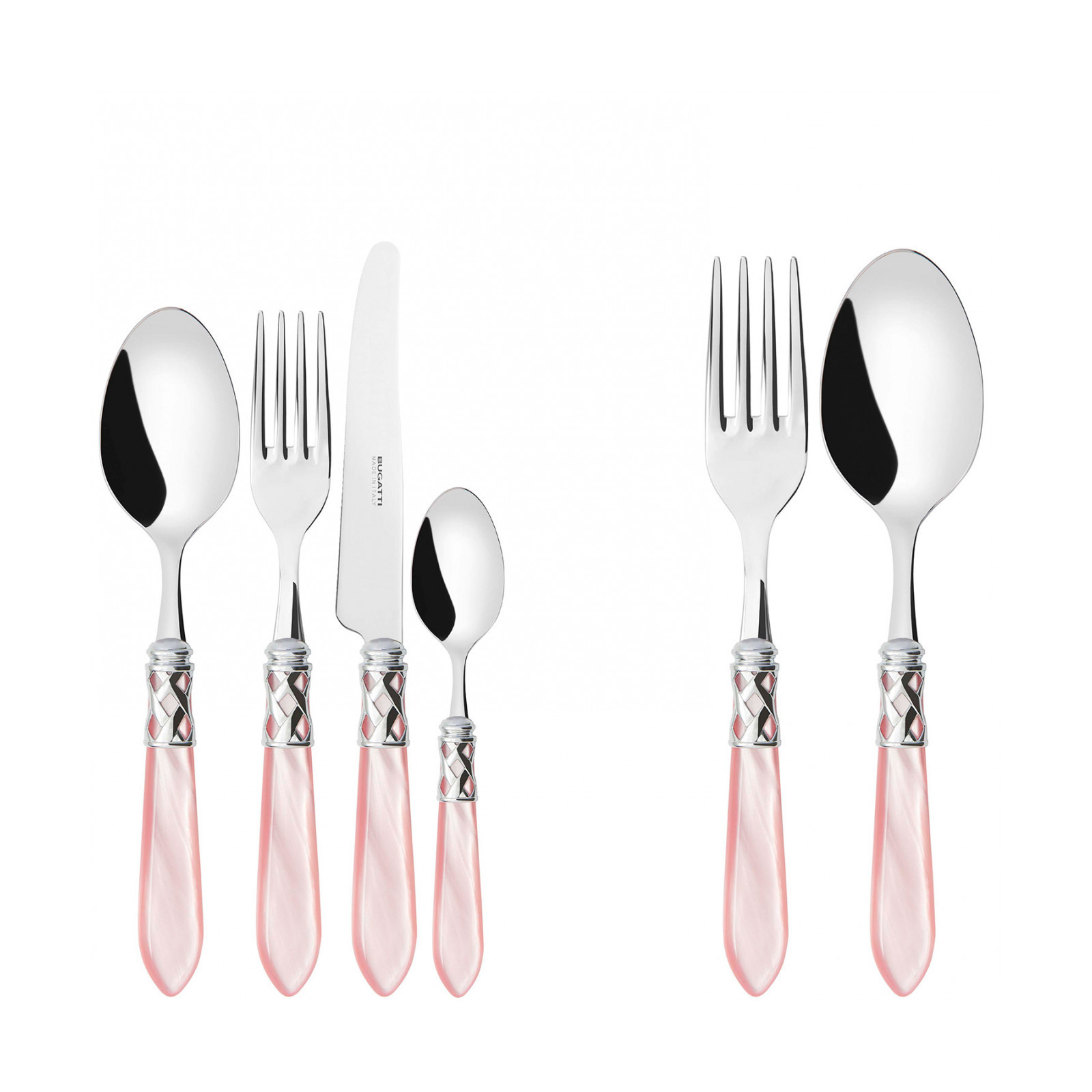 The coloured Aladdin Shining Ring cutlery range was created to bring magic and performance to your table. Each individual piece is made with meticulous care. Made of 18/10 stainless steel, each features an elegant acrylic handle combined with a refined braided ring with a polished steel finish. This cutlery is dishwasher safe.