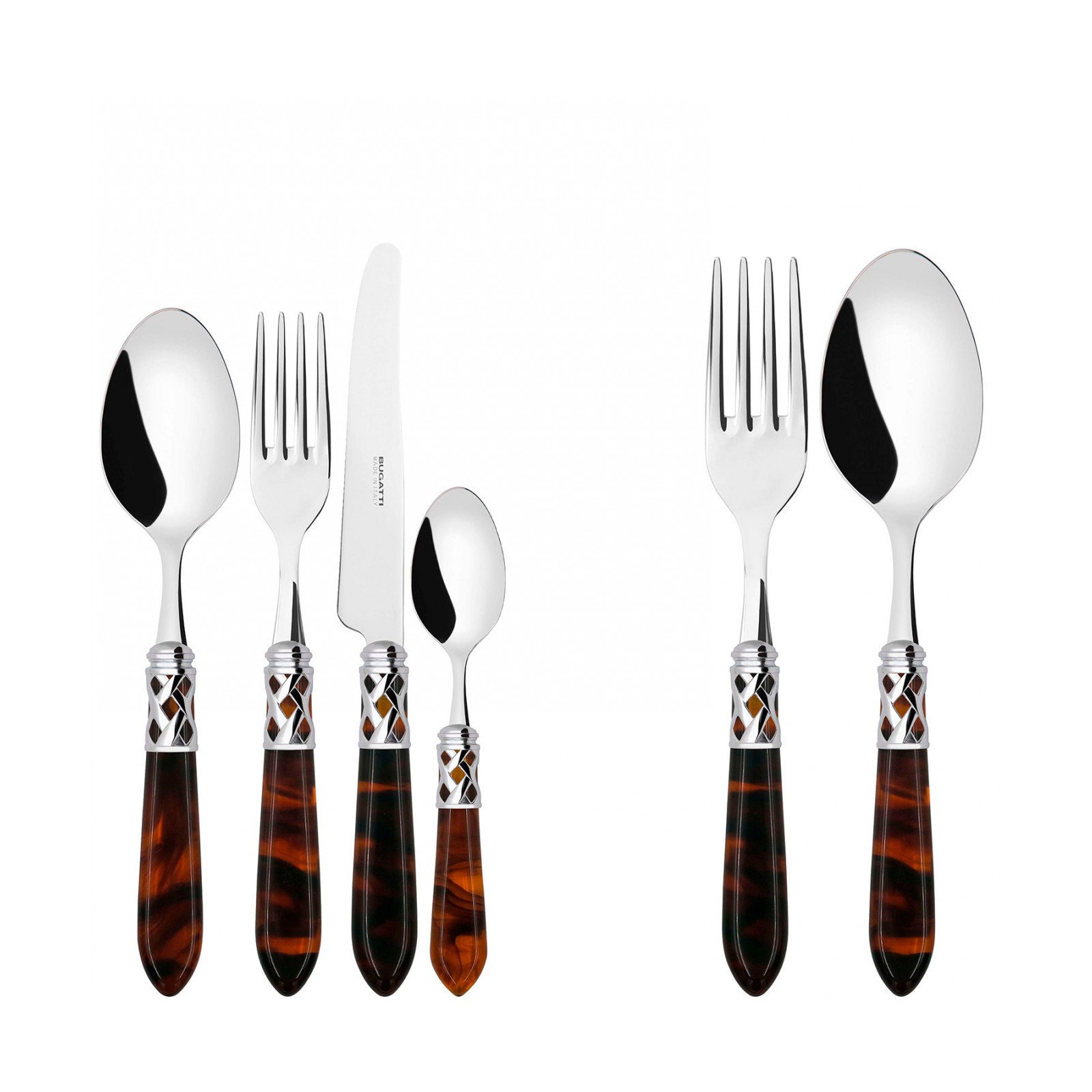 The coloured Aladdin Shining Ring cutlery range was created to bring magic and performance to your table. Each individual piece is made with meticulous care. Made of 18/10 stainless steel, each features an elegant acrylic handle combined with a refined braided ring with a polished steel finish. This cutlery is dishwasher safe.