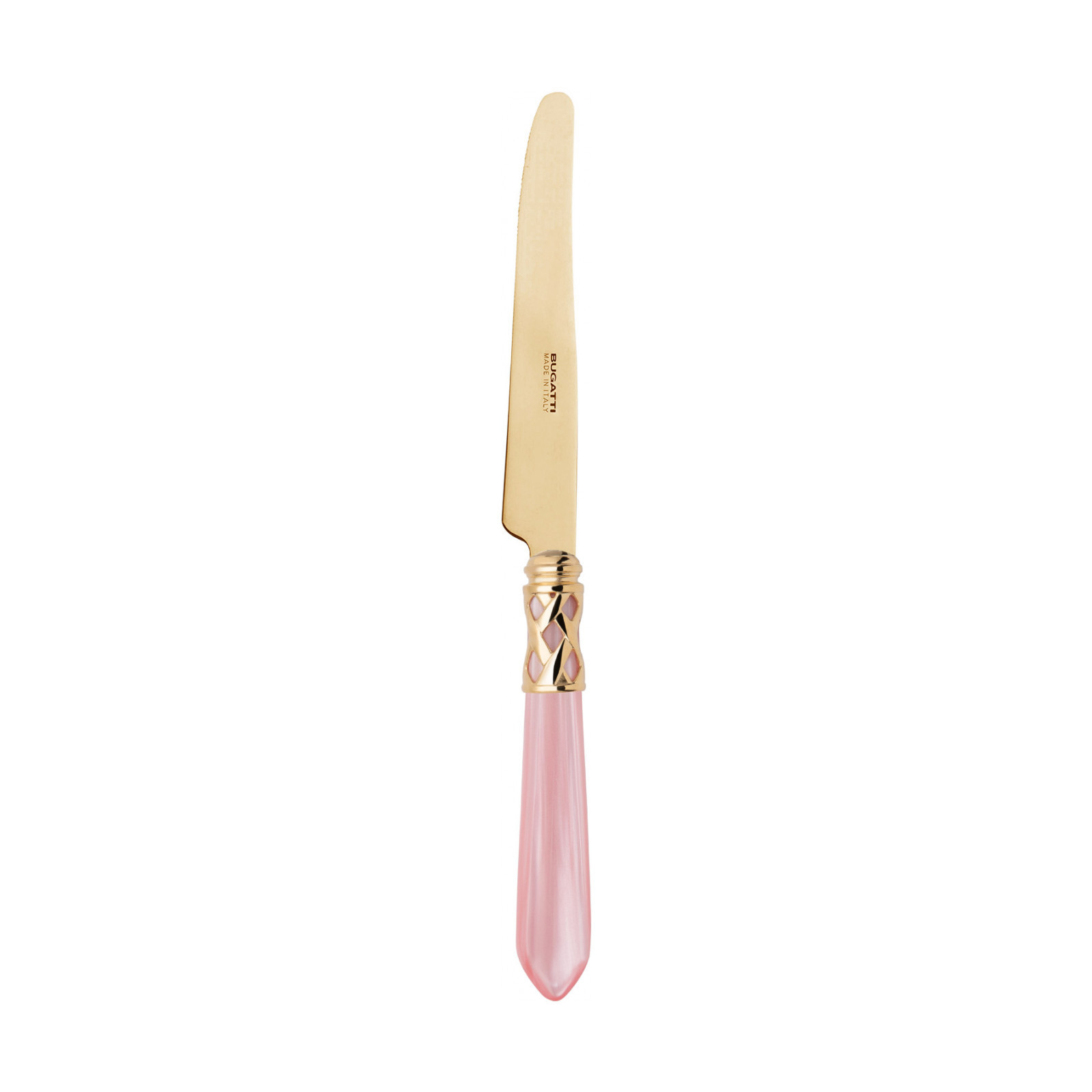 The coloured Aladdin Gold cutlery range was created to bring magic and performance to your table. Each individual piece is made with meticulous care; made of PVD Gold 18/10 stainless steel, the cutlery features an elegant acrylic handle combined with a refined braided ring with a golden finish.
