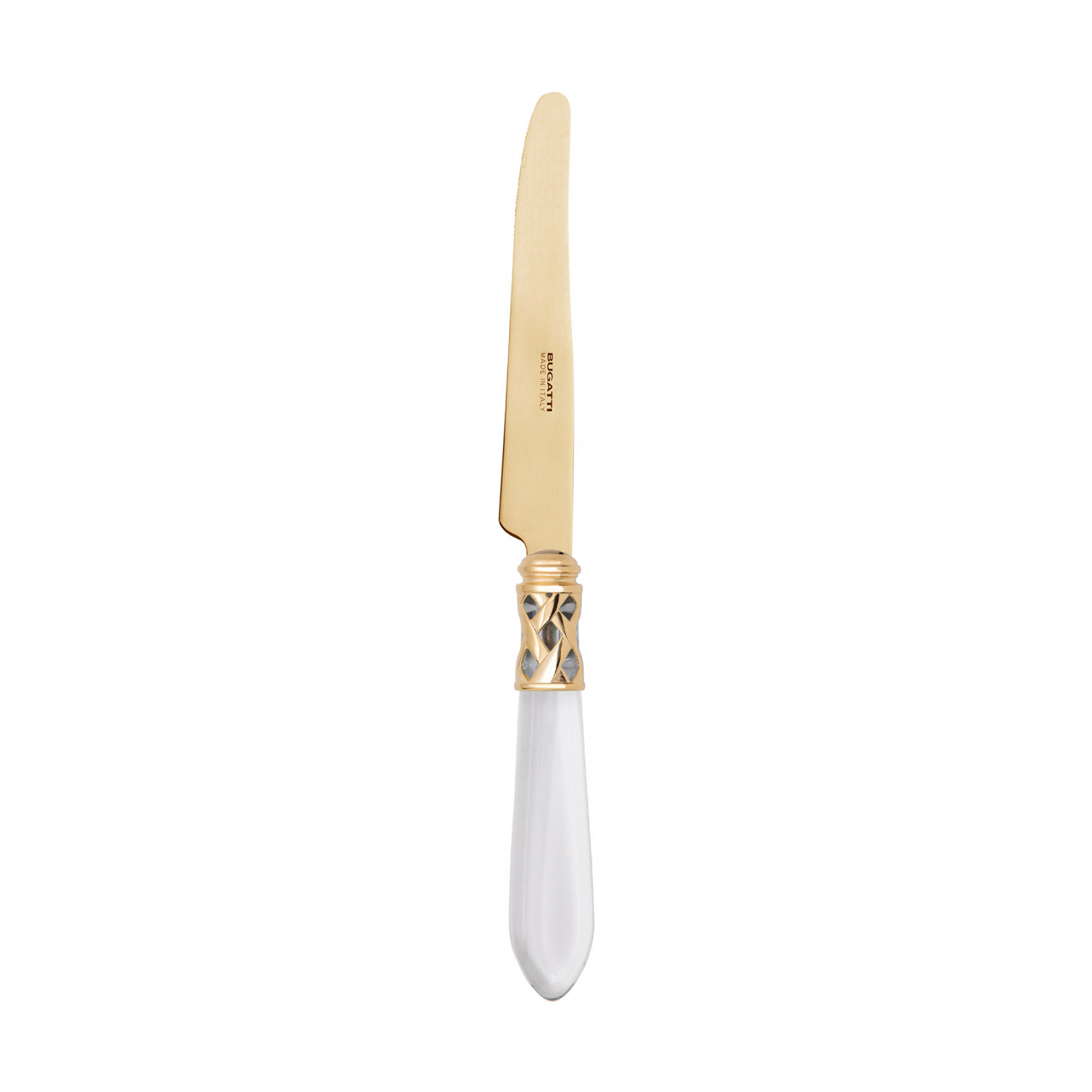 The coloured Aladdin Gold cutlery range was created to bring magic and performance to your table. Each individual piece is made with meticulous care; made of PVD Gold 18/10 stainless steel, the cutlery features an elegant acrylic handle combined with a refined braided ring with a golden finish.