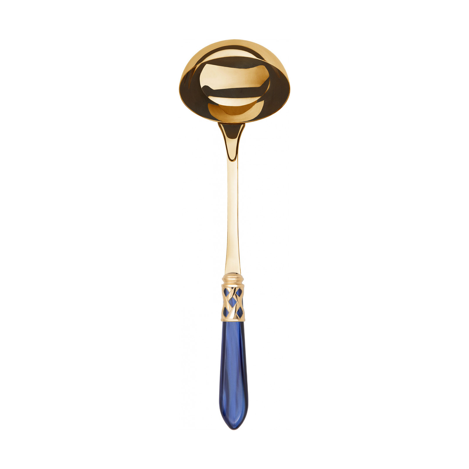 The coloured Aladdin Gold cutlery range was created to bring magic and performance to your table. Each individual piece is made with meticulous care; made of PVD Gold 18/10 stainless steel, the cutlery features an elegant acrylic handle combined with a refined braided ring with a golden finish.