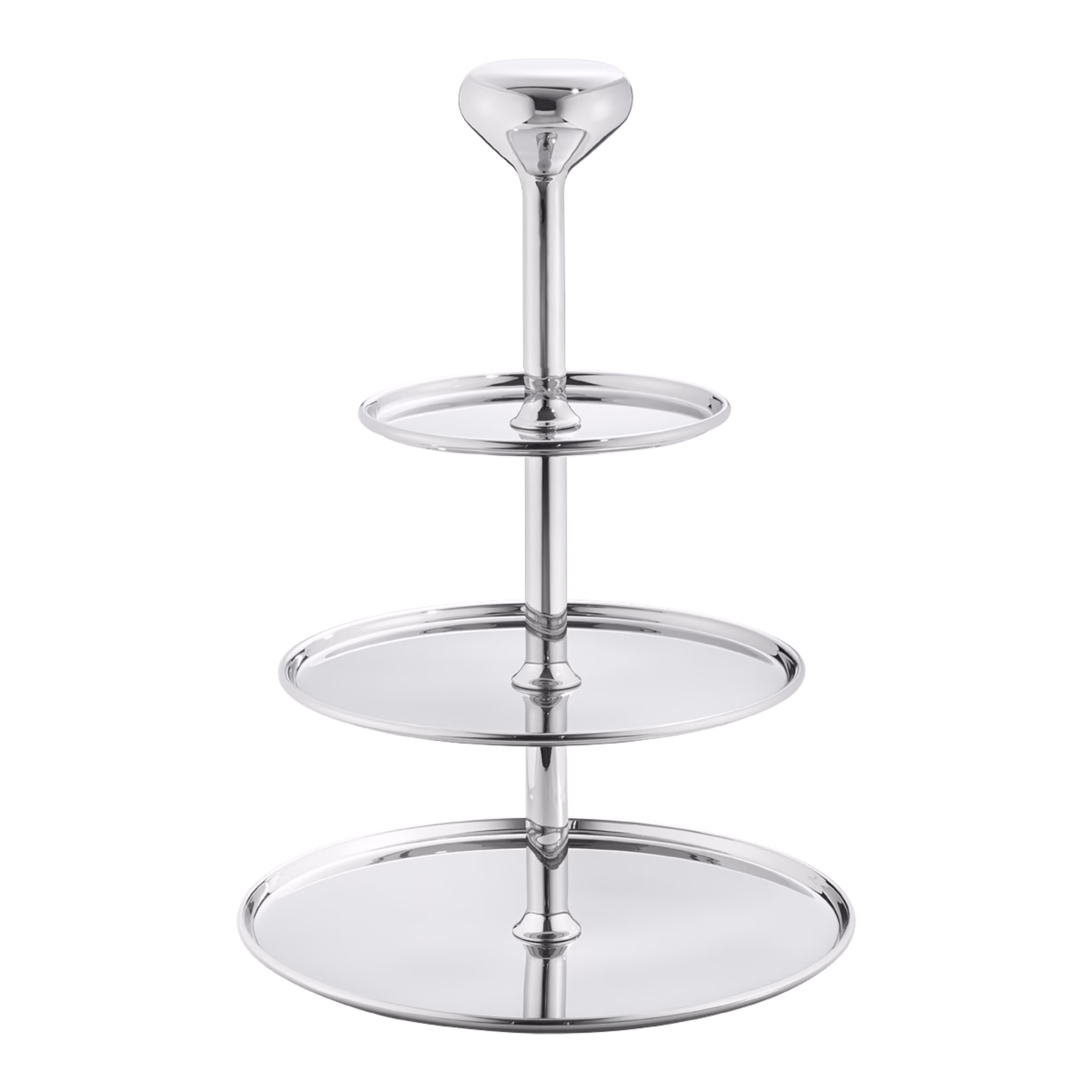 The cake stand is beautifully made from mirror-polished stainless steel. It is suitable for use with food.
