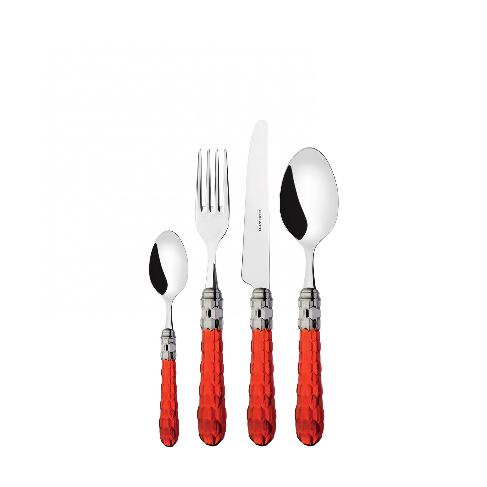 Cristallo Shining Ring coloured cutlery features a polished steel coloured ring and a transparent handle embellished with numerous crystal-like facets. The Cristallo cutlery set is the original choice for those who want to decorate their table with authentic tableware jewels. This cutlery range is made from 18/10 stainless steel and is dishwasher safe.