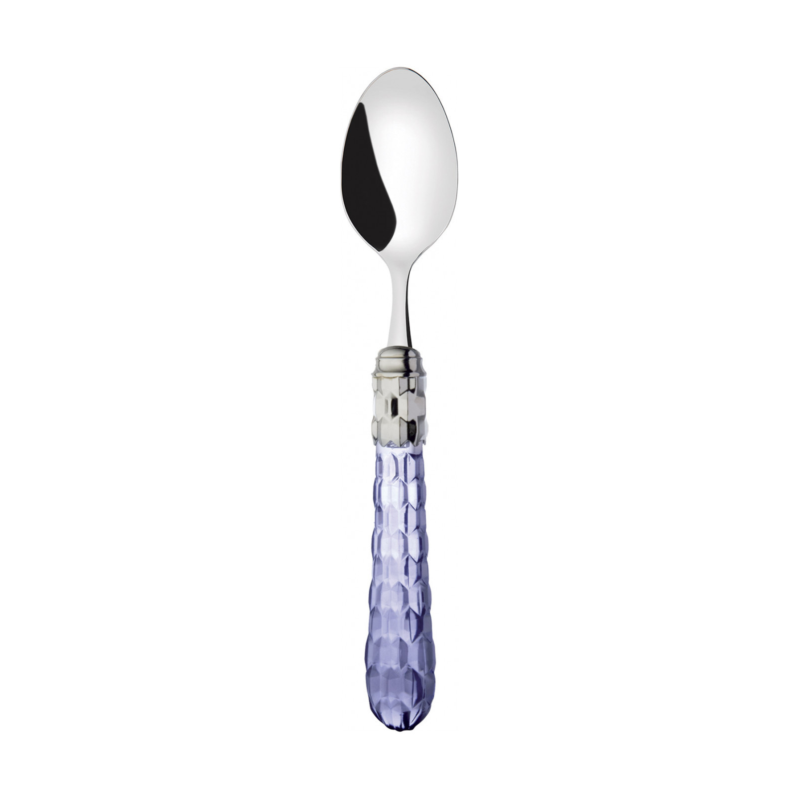 Cristallo Shining Ring coloured cutlery features a polished steel coloured ring and a transparent handle embellished with numerous crystal-like facets. The Cristallo cutlery set is the original choice for those who want to decorate their table with authentic tableware jewels. This cutlery range is made from 18/10 stainless steel and is dishwasher safe.