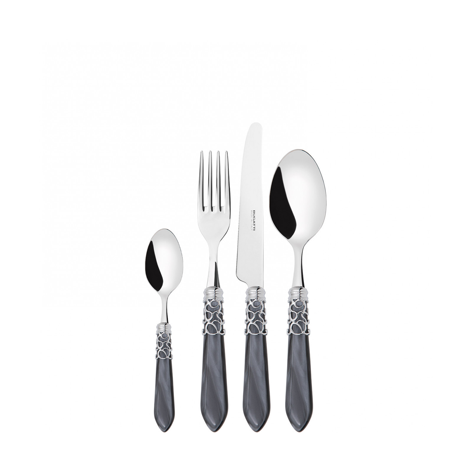 Choose the Melody Shining Ring coloured cutlery set to enchant and captivate your guests at the table. Each piece is crafted with meticulous care and attention in 18/10 stainless steel. The elegant acrylic handle and a precious ring with a polished steel finish recalls the intertwined melodic notes of a memorable musical performance. This cutlery is dishwasher safe.