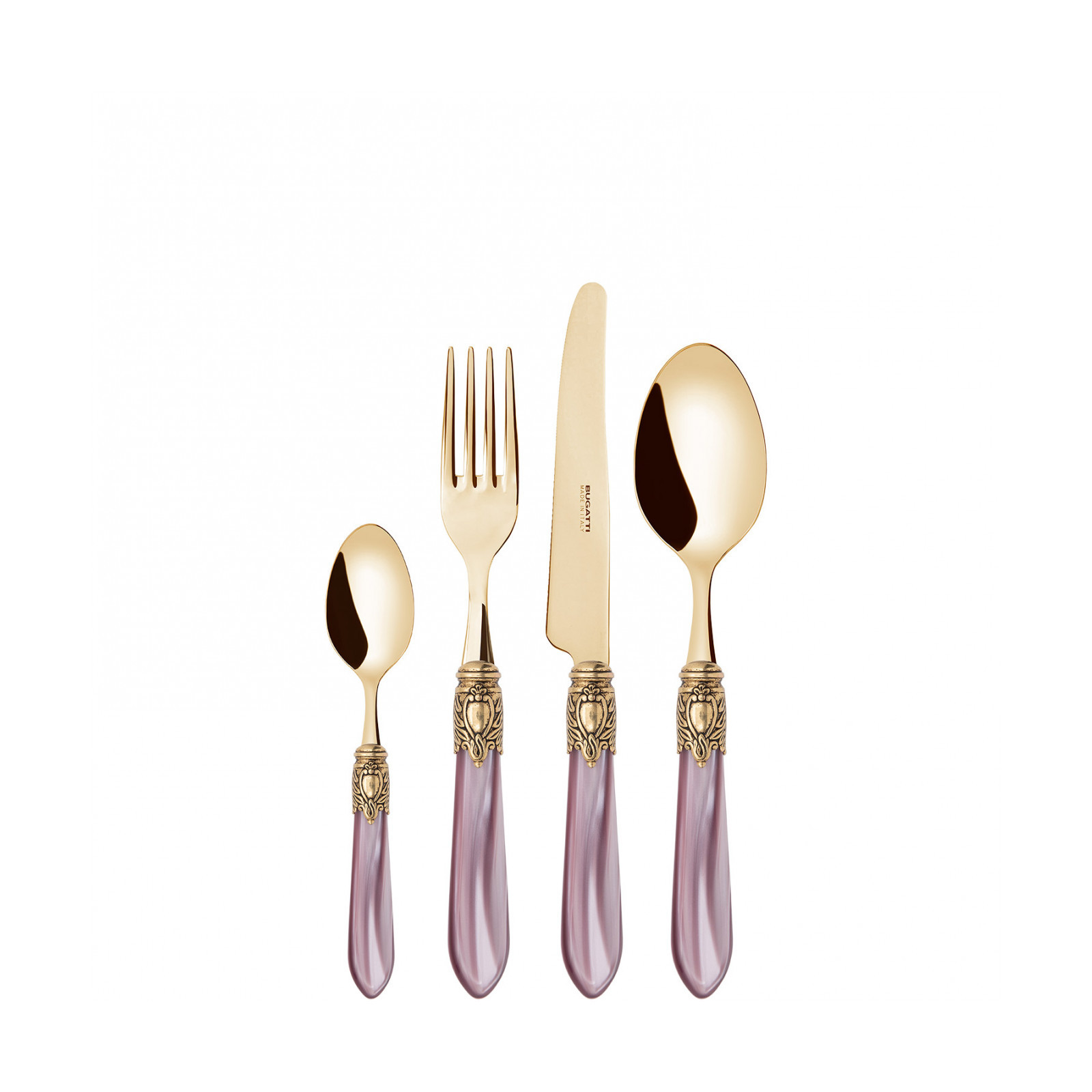 Observe the most important rules of etiquette by bringing Oxford Gold coloured cutlery to the table. To ensure an elegant table with a regal spirit, each piece in the Oxford range is made of gold PVD-coated 18/10 stainless steel, with an acrylic handle embellished with a sophisticated antique gold-finished ring that resembles a noble coat of arms. The Oxford Gold cutlery range is the perfect accessory to ensure an even more elegant and regal table setting.