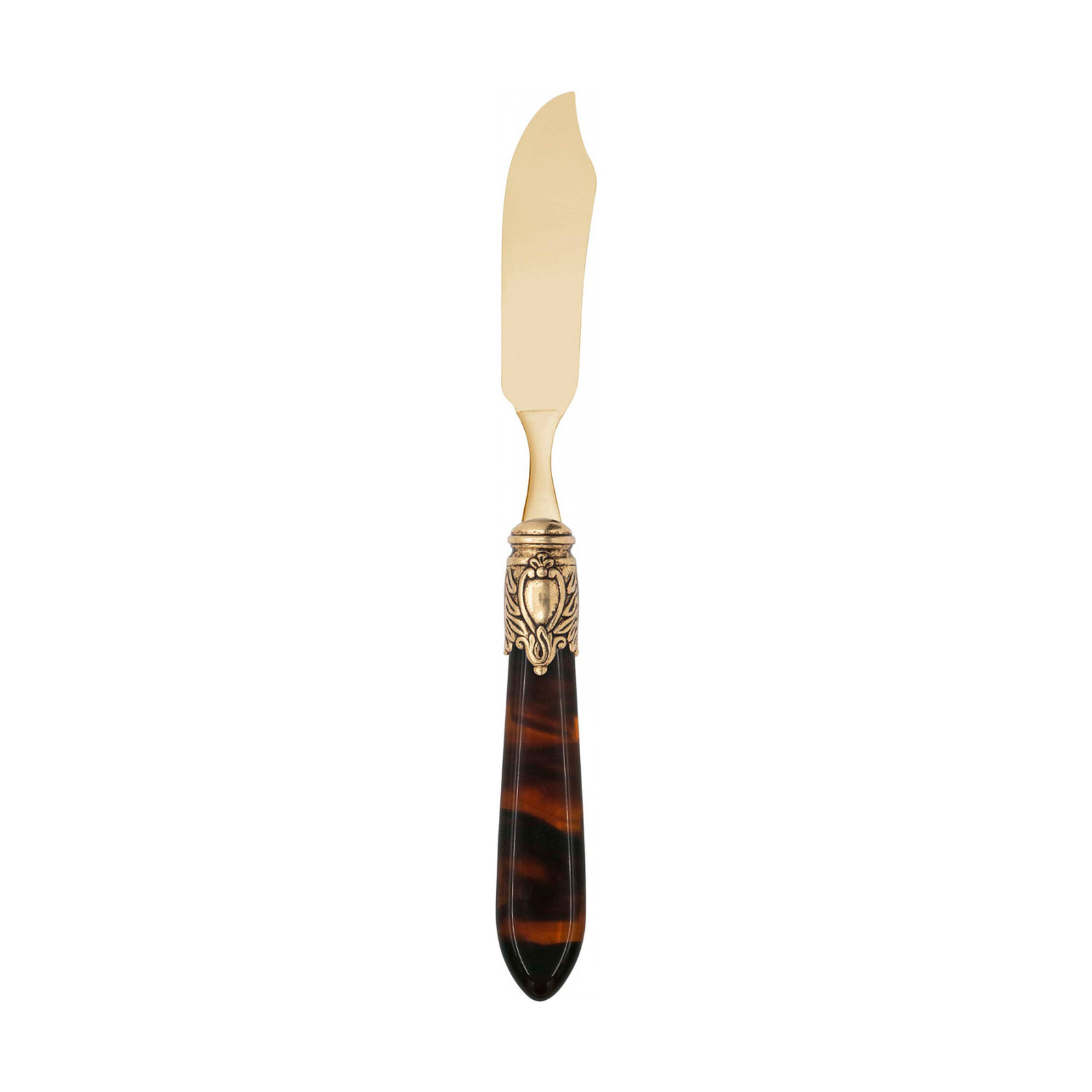 Observe the most important rules of etiquette by bringing Oxford Gold coloured cutlery to the table. To ensure an elegant table with a regal spirit, each piece in the Oxford range is made of gold PVD-coated 18/10 stainless steel, with an acrylic handle embellished with a sophisticated antique gold-finished ring that resembles a noble coat of arms. The Oxford Gold cutlery range is the perfect accessory to ensure an even more elegant and regal table setting.