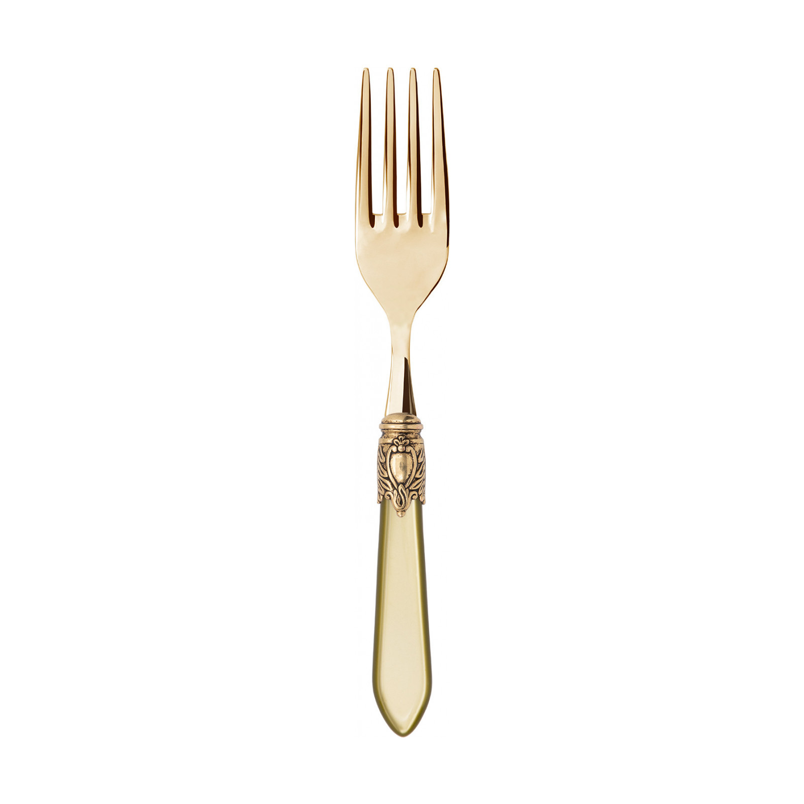 Observe the most important rules of etiquette by bringing Oxford Gold coloured cutlery to the table. To ensure an elegant table with a regal spirit, each piece in the Oxford range is made of gold PVD-coated 18/10 stainless steel, with an acrylic handle embellished with a sophisticated antique gold-finished ring that resembles a noble coat of arms. The Oxford Gold cutlery range is the perfect accessory to ensure an even more elegant and regal table setting.
