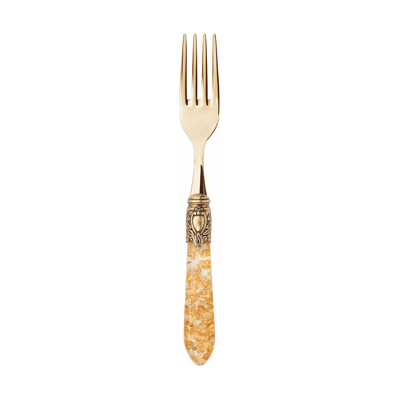 Observe the most important rules of etiquette by bringing Oxford Gold coloured cutlery to the table. To ensure an elegant table with a regal spirit, each piece in the Oxford range is made of gold PVD-coated 18/10 stainless steel, with an acrylic handle embellished with a sophisticated antique gold-finished ring that resembles a noble coat of arms. The Oxford Gold cutlery range is the perfect accessory to ensure an even more elegant and regal table setting.