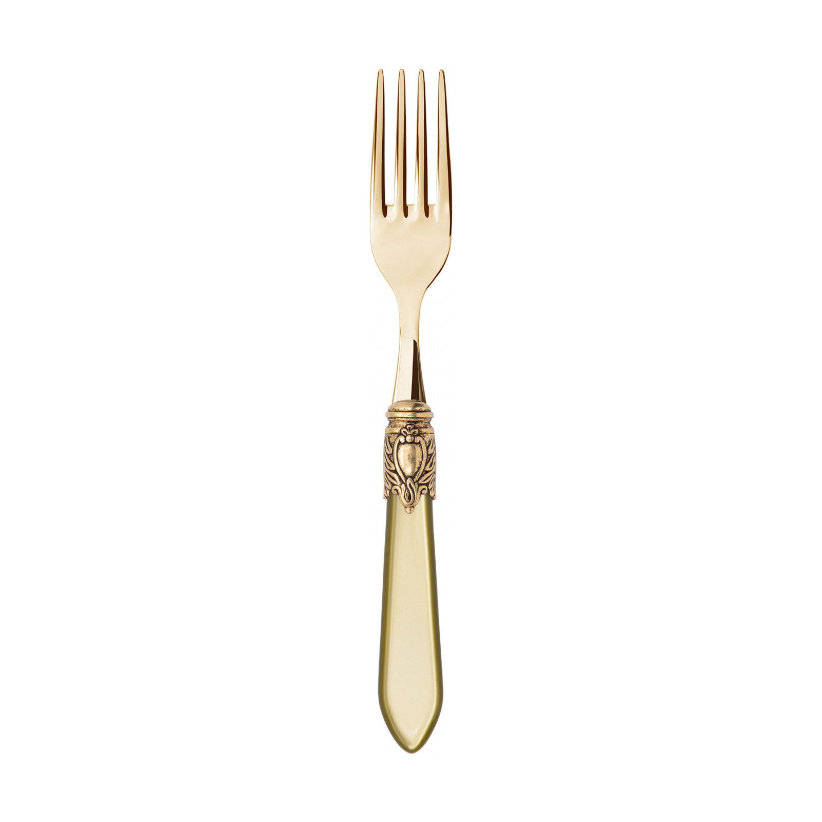 Observe the most important rules of etiquette by bringing Oxford Gold coloured cutlery to the table. To ensure an elegant table with a regal spirit, each piece in the Oxford range is made of gold PVD-coated 18/10 stainless steel, with an acrylic handle embellished with a sophisticated antique gold-finished ring that resembles a noble coat of arms. The Oxford Gold cutlery range is the perfect accessory to ensure an even more elegant and regal table setting.