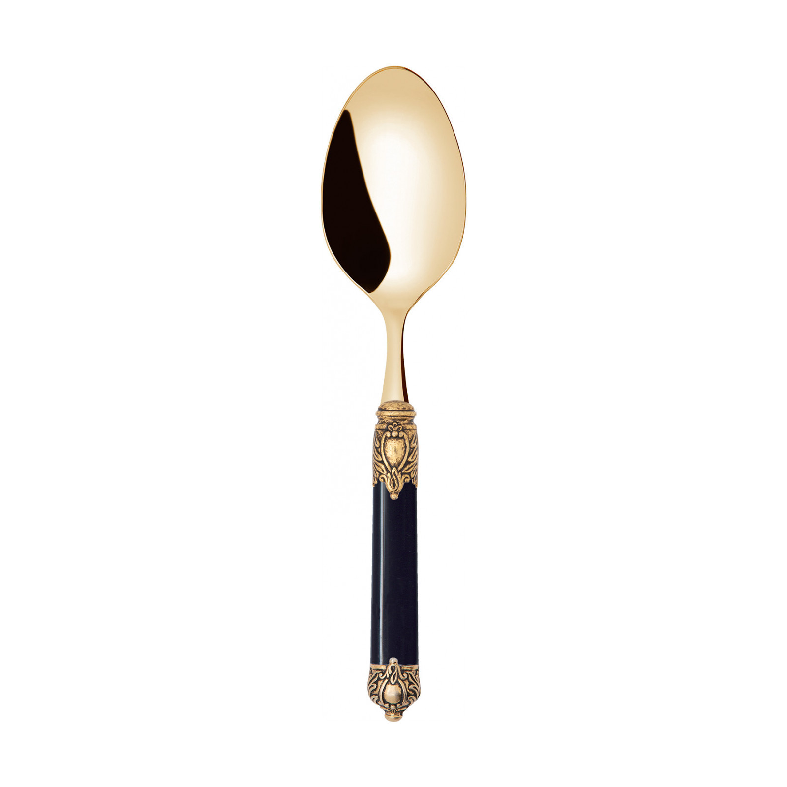 Inspired by the values and aspirations that guided the Renaissance, the Rinascimento Gold cutlery range embodies the refined beauty of classical art the perfect representation of an ideal elegance that is universally appreciated and recognised. This 18/10 gold PVT stainless steel cutlery consists of a refined coat of arms motif ring coated in gold and an elegant oval ABS handle.