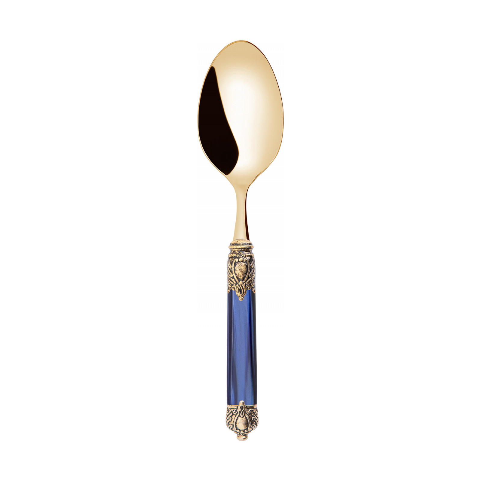 Inspired by the values and aspirations that guided the Renaissance, the Rinascimento Gold cutlery range embodies the refined beauty of classical art the perfect representation of an ideal elegance that is universally appreciated and recognised. This 18/10 gold PVT stainless steel cutlery consists of a refined coat of arms motif ring coated in gold and an elegant oval ABS handle.