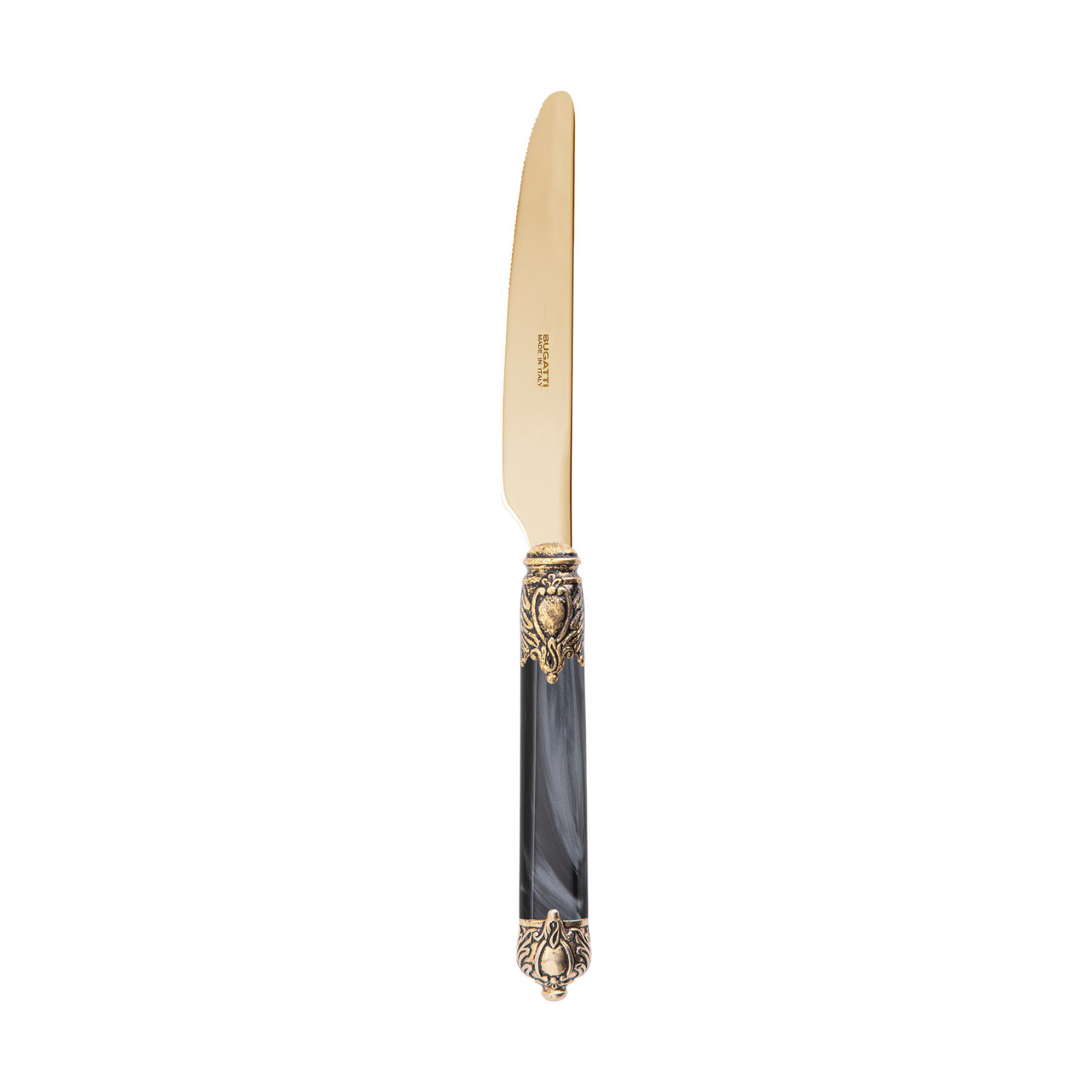 Inspired by the values and aspirations that guided the Renaissance, the Rinascimento Gold cutlery range embodies the refined beauty of classical art the perfect representation of an ideal elegance that is universally appreciated and recognised. This 18/10 gold PVT stainless steel cutlery consists of a refined coat of arms motif ring coated in gold and an elegant oval ABS handle.