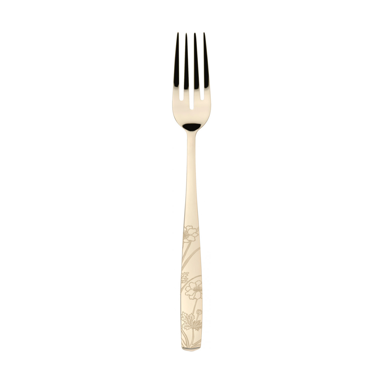 The Riviera Lady Champagne line of 18/10 stainless steel champagne PVD-coated cutlery is enveloped in a refined floral design, bringing to your table the essence of the garden of wonders from which it takes its inspiration, fashionably enhancing its elegance. Designer Alessandro Parascandolo has hand-drawn the pattern of the decorated cutlery, which is later engraved with a laser. The knife is forged in one piece. This cutlery is dishwasher safe.