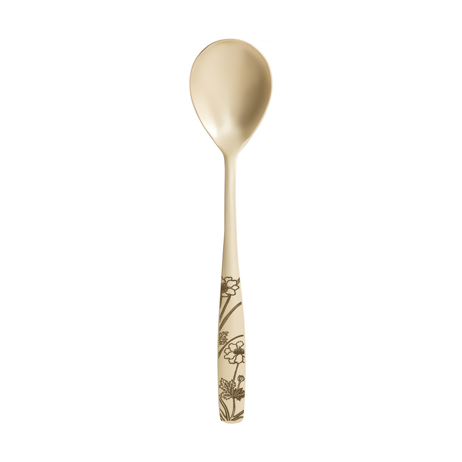 The Riviera Lady Champagne line of 18/10 stainless steel champagne PVD-coated cutlery is enveloped in a refined floral design, bringing to your table the essence of the garden of wonders from which it takes its inspiration, fashionably enhancing its elegance. Designer Alessandro Parascandolo has hand-drawn the pattern of the decorated cutlery, which is later engraved with a laser. The knife is forged in one piece. This cutlery is dishwasher safe.
