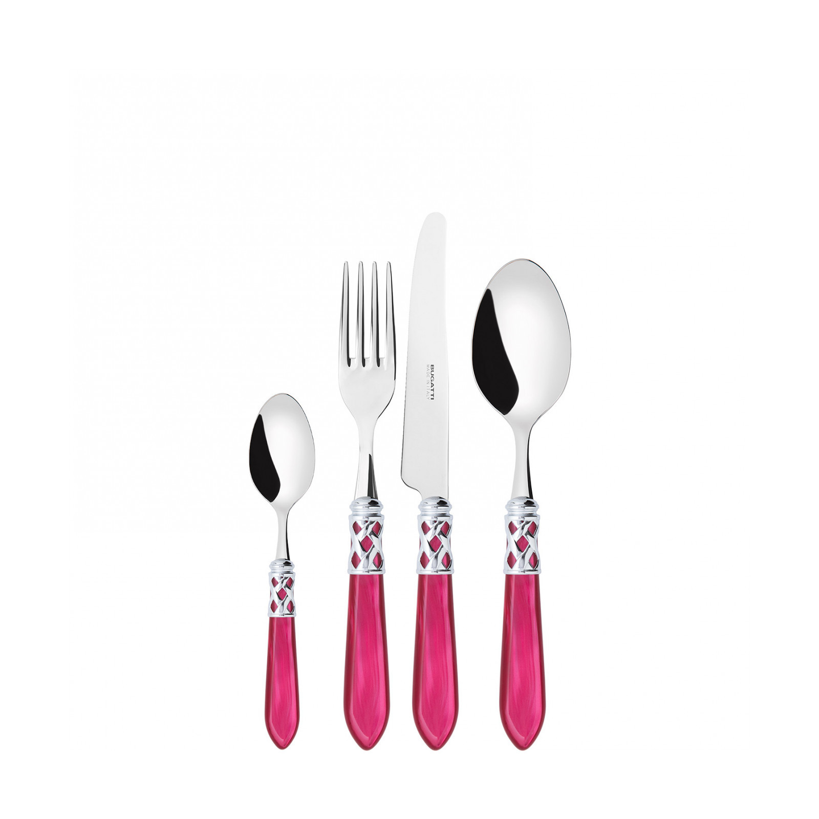 The coloured Aladdin Shining Ring cutlery range was created to bring magic and performance to your table. Each individual piece is made with meticulous care. Made of 18/10 stainless steel, each features an elegant acrylic handle combined with a refined braided ring with a polished steel finish. This cutlery is dishwasher safe.