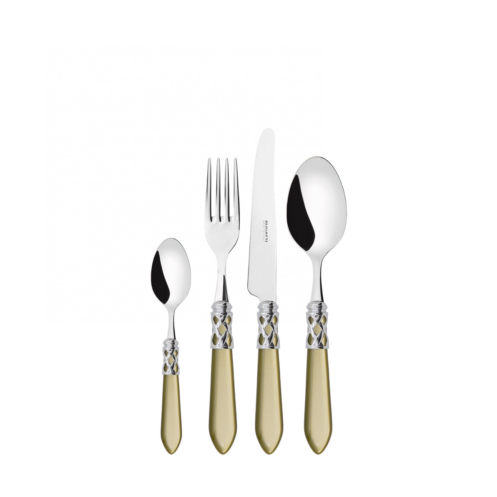 The coloured Aladdin Shining Ring cutlery range was created to bring magic and performance to your table. Each individual piece is made with meticulous care. Made of 18/10 stainless steel, each features an elegant acrylic handle combined with a refined braided ring with a polished steel finish. This cutlery is dishwasher safe.