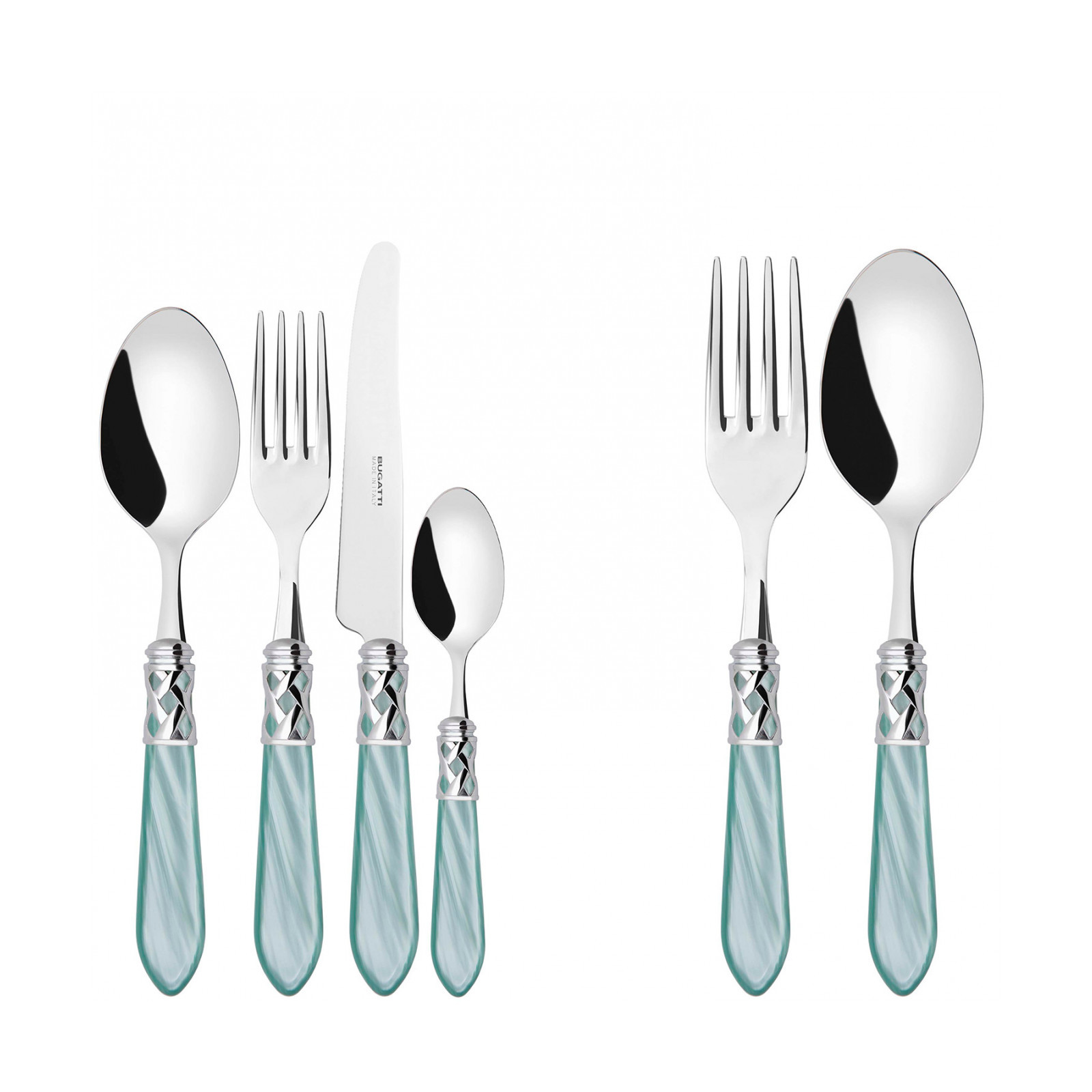 The coloured Aladdin Shining Ring cutlery range was created to bring magic and performance to your table. Each individual piece is made with meticulous care. Made of 18/10 stainless steel, each features an elegant acrylic handle combined with a refined braided ring with a polished steel finish. This cutlery is dishwasher safe.