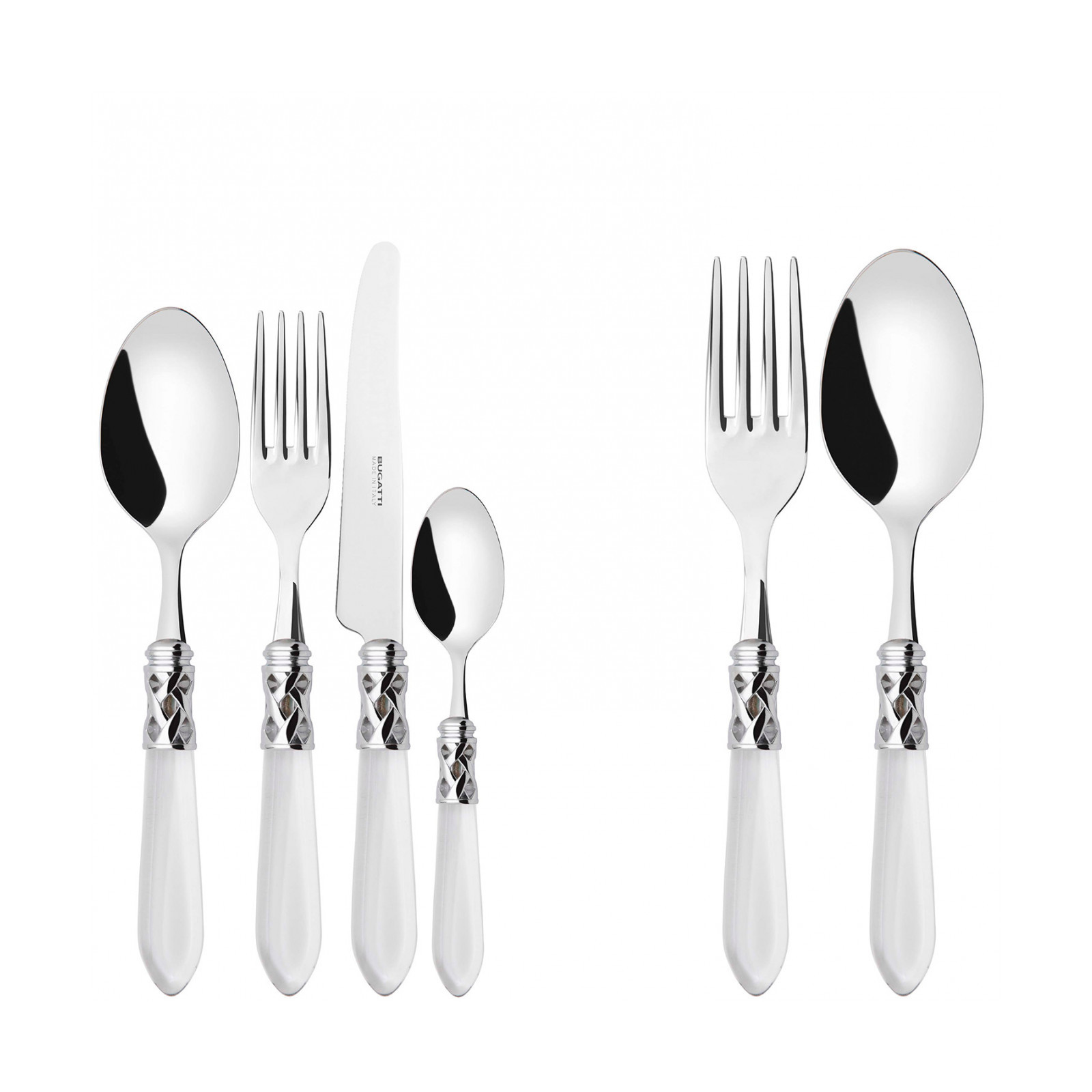 The coloured Aladdin Shining Ring cutlery range was created to bring magic and performance to your table. Each individual piece is made with meticulous care. Made of 18/10 stainless steel, each features an elegant acrylic handle combined with a refined braided ring with a polished steel finish. This cutlery is dishwasher safe.