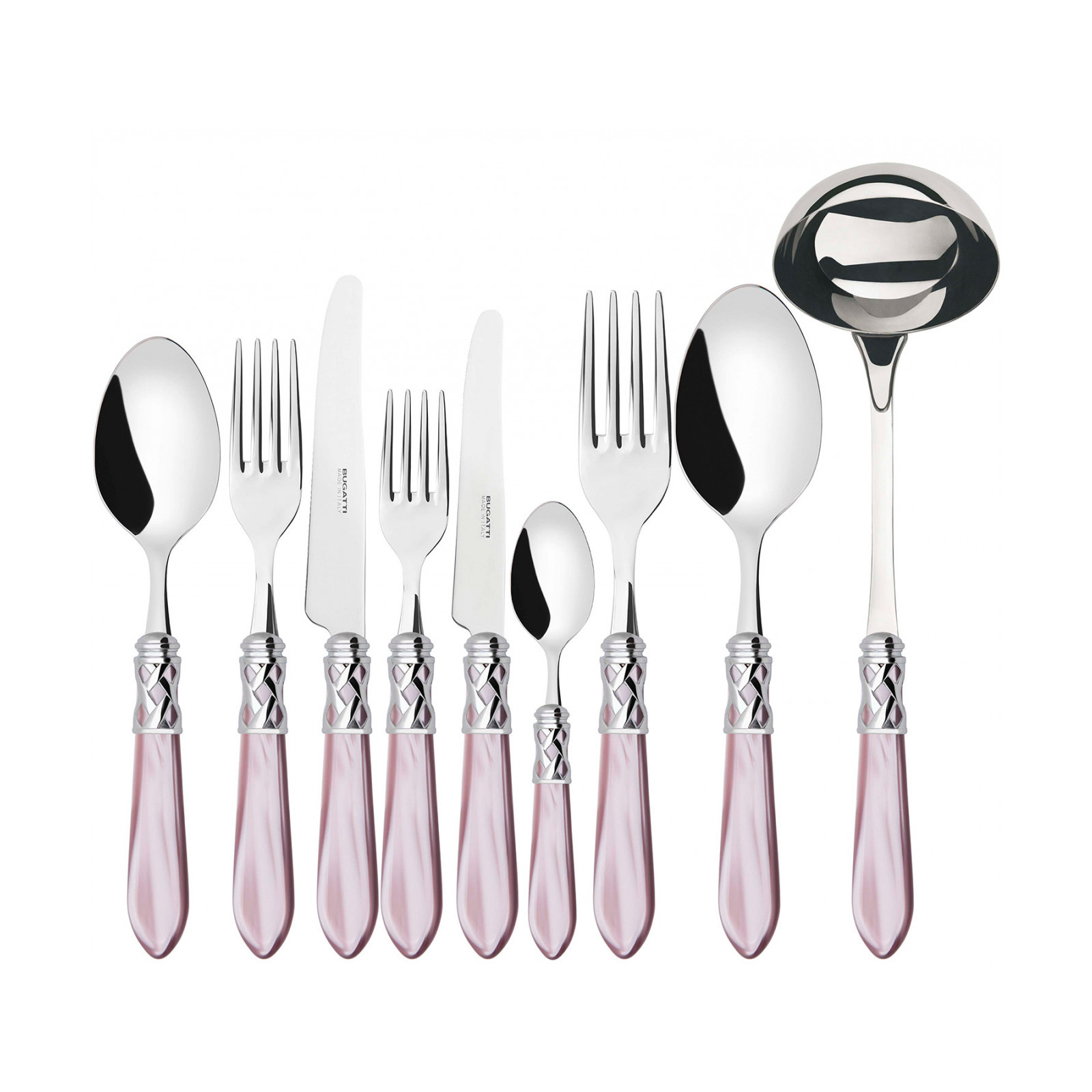 The coloured Aladdin Shining Ring cutlery range was created to bring magic and performance to your table. Each individual piece is made with meticulous care. Made of 18/10 stainless steel, each features an elegant acrylic handle combined with a refined braided ring with a polished steel finish. This cutlery is dishwasher safe.