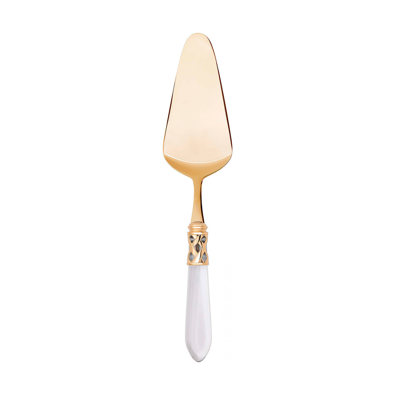 The coloured Aladdin Gold cutlery range was created to bring magic and performance to your table. Each individual piece is made with meticulous care; made of PVD Gold 18/10 stainless steel, the cutlery features an elegant acrylic handle combined with a refined braided ring with a golden finish.