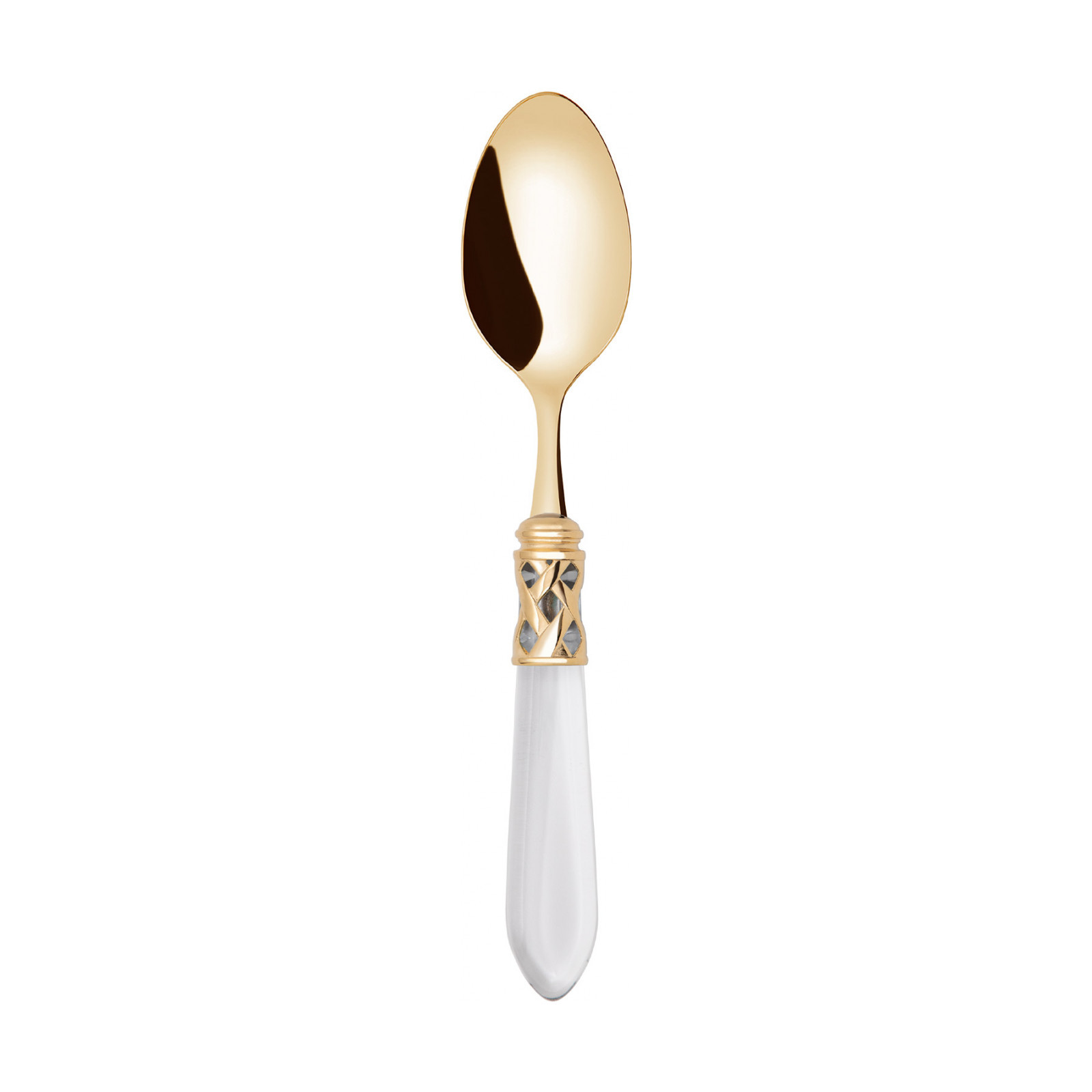 The coloured Aladdin Gold cutlery range was created to bring magic and performance to your table. Each individual piece is made with meticulous care; made of PVD Gold 18/10 stainless steel, the cutlery features an elegant acrylic handle combined with a refined braided ring with a golden finish.