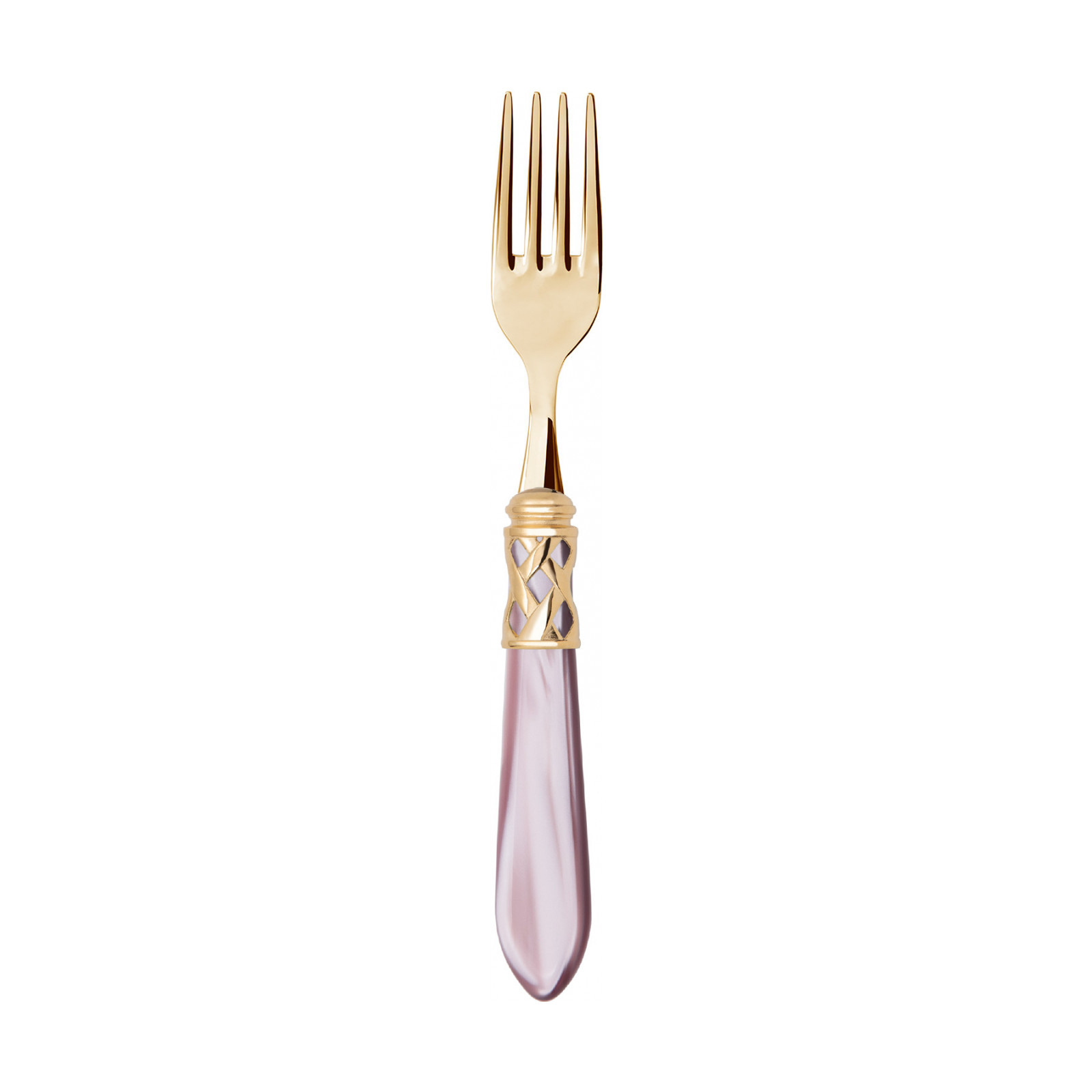 The coloured Aladdin Gold cutlery range was created to bring magic and performance to your table. Each individual piece is made with meticulous care; made of PVD Gold 18/10 stainless steel, the cutlery features an elegant acrylic handle combined with a refined braided ring with a golden finish.