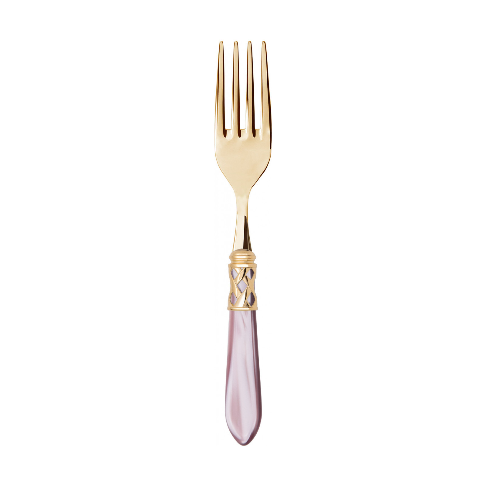 The coloured Aladdin Gold cutlery range was created to bring magic and performance to your table. Each individual piece is made with meticulous care; made of PVD Gold 18/10 stainless steel, the cutlery features an elegant acrylic handle combined with a refined braided ring with a golden finish.