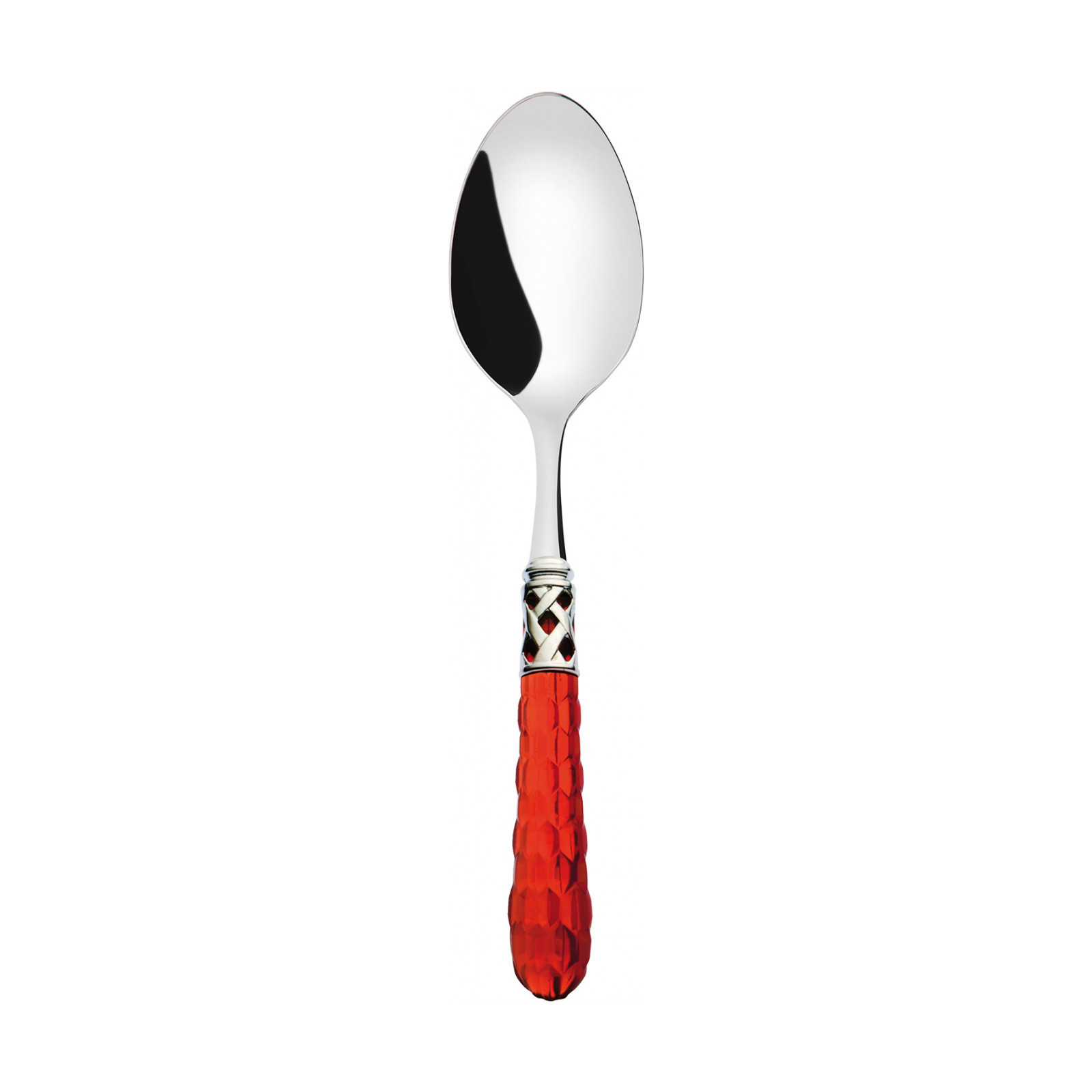 The Bohemia Shining Ring coloured cutlery set decorates your table in tasteful yet unconventional style. The design of this 18/10 stainless steel cutlery set is centred on a polished steel braided ring and a finely decorated translucent coloured handle shaped with multiple facets reminiscent of crystal surfaces. This cutlery is dishwasher safe.