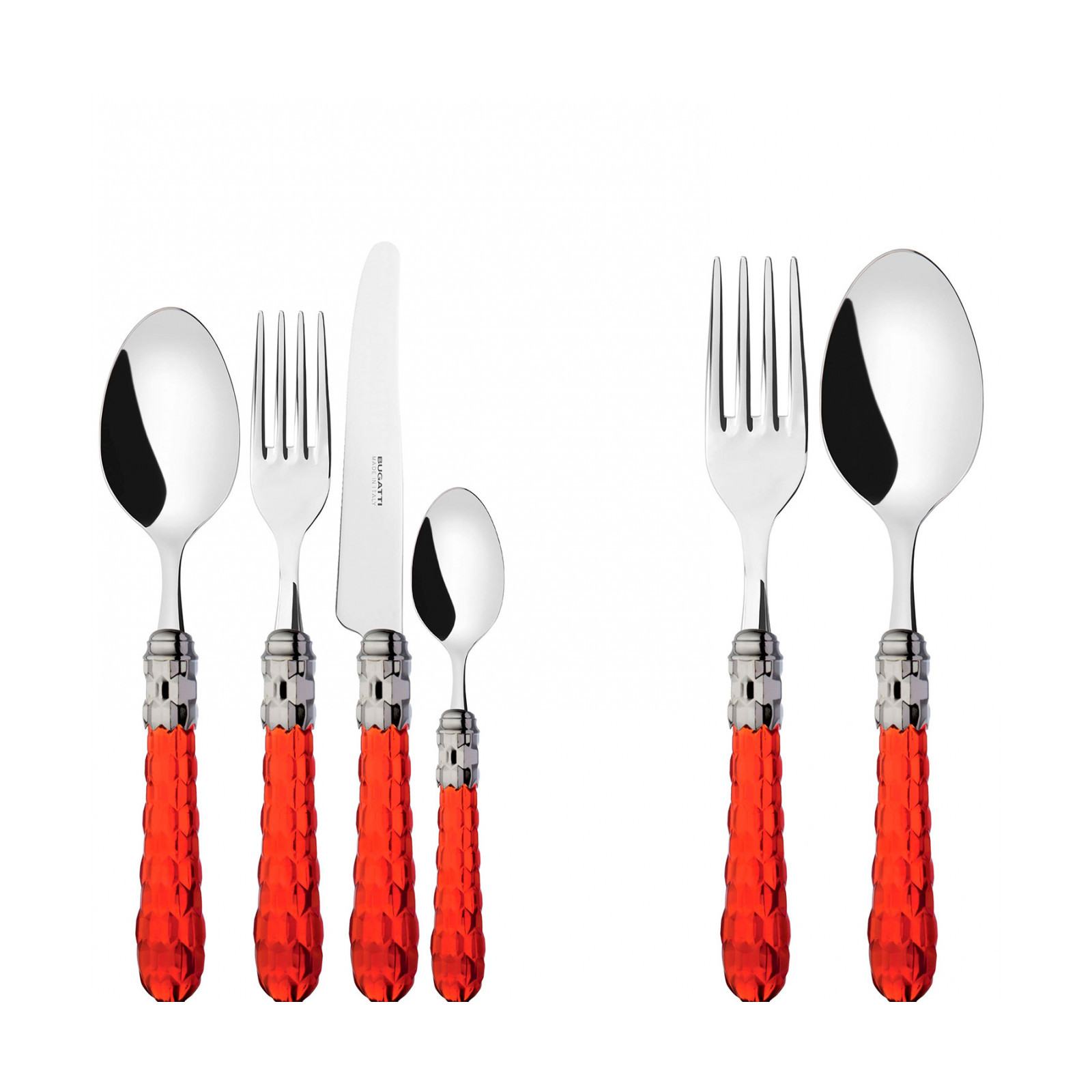 Cristallo Shining Ring coloured cutlery features a polished steel coloured ring and a transparent handle embellished with numerous crystal-like facets. The Cristallo cutlery set is the original choice for those who want to decorate their table with authentic tableware jewels. This cutlery range is made from 18/10 stainless steel and is dishwasher safe.