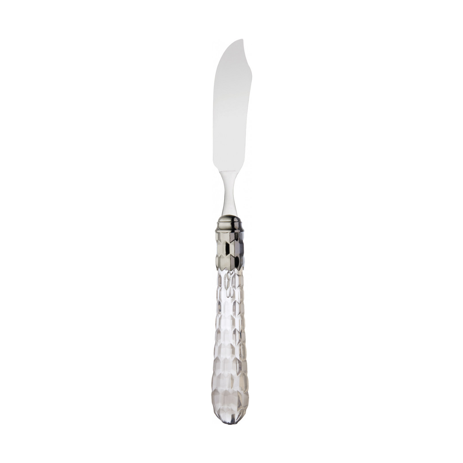 Cristallo Shining Ring coloured cutlery features a polished steel coloured ring and a transparent handle embellished with numerous crystal-like facets. The Cristallo cutlery set is the original choice for those who want to decorate their table with authentic tableware jewels. This cutlery range is made from 18/10 stainless steel and is dishwasher safe.