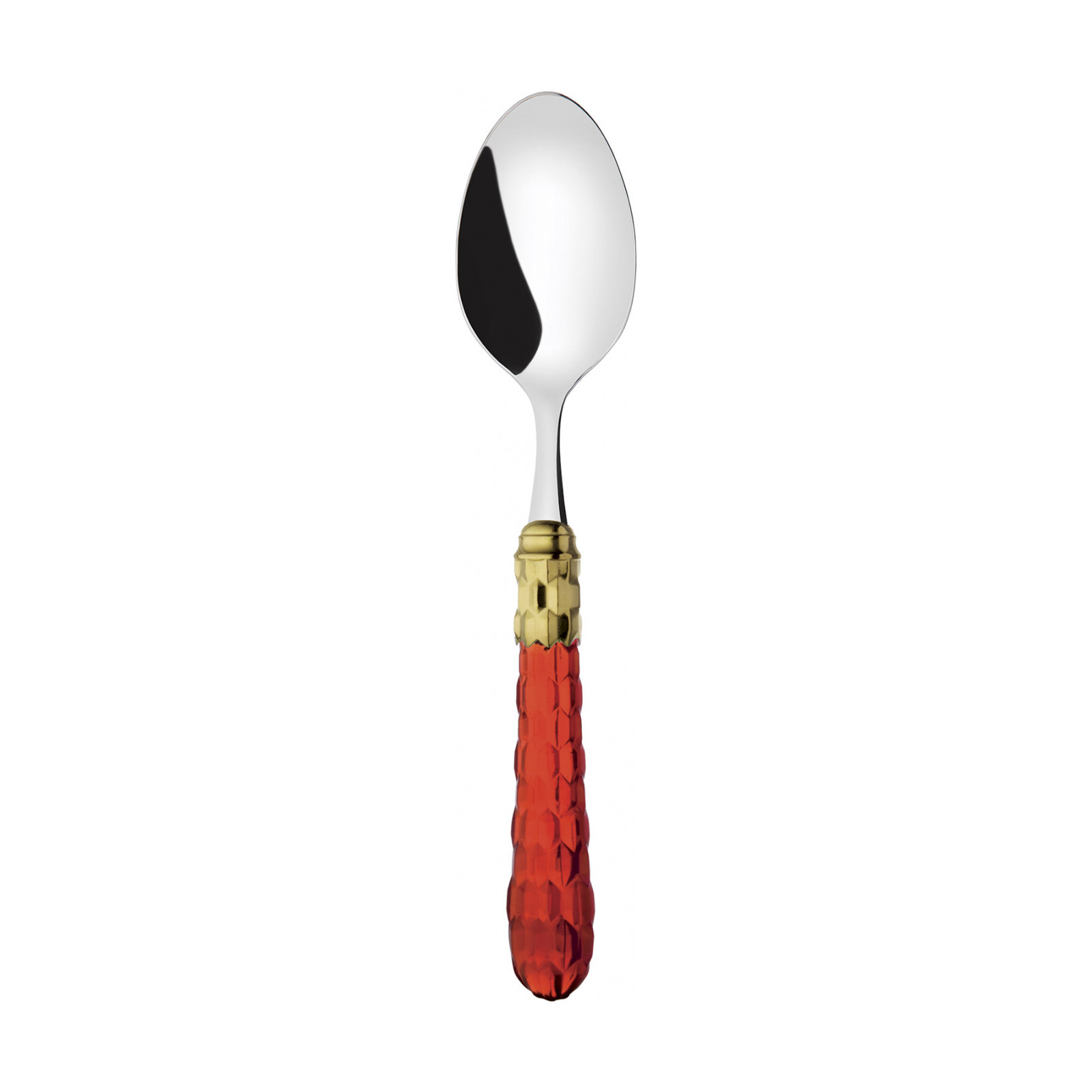 Cristallo Gold-Plated Ring coloured cutlery features a gold-plated ring and a transparent handle embellished with numerous crystal-like facets. The Cristallo cutlery set is the original choice for those who want to decorate their table with authentic tableware jewels. This cutlery range is made of 18/10 stainless steel.