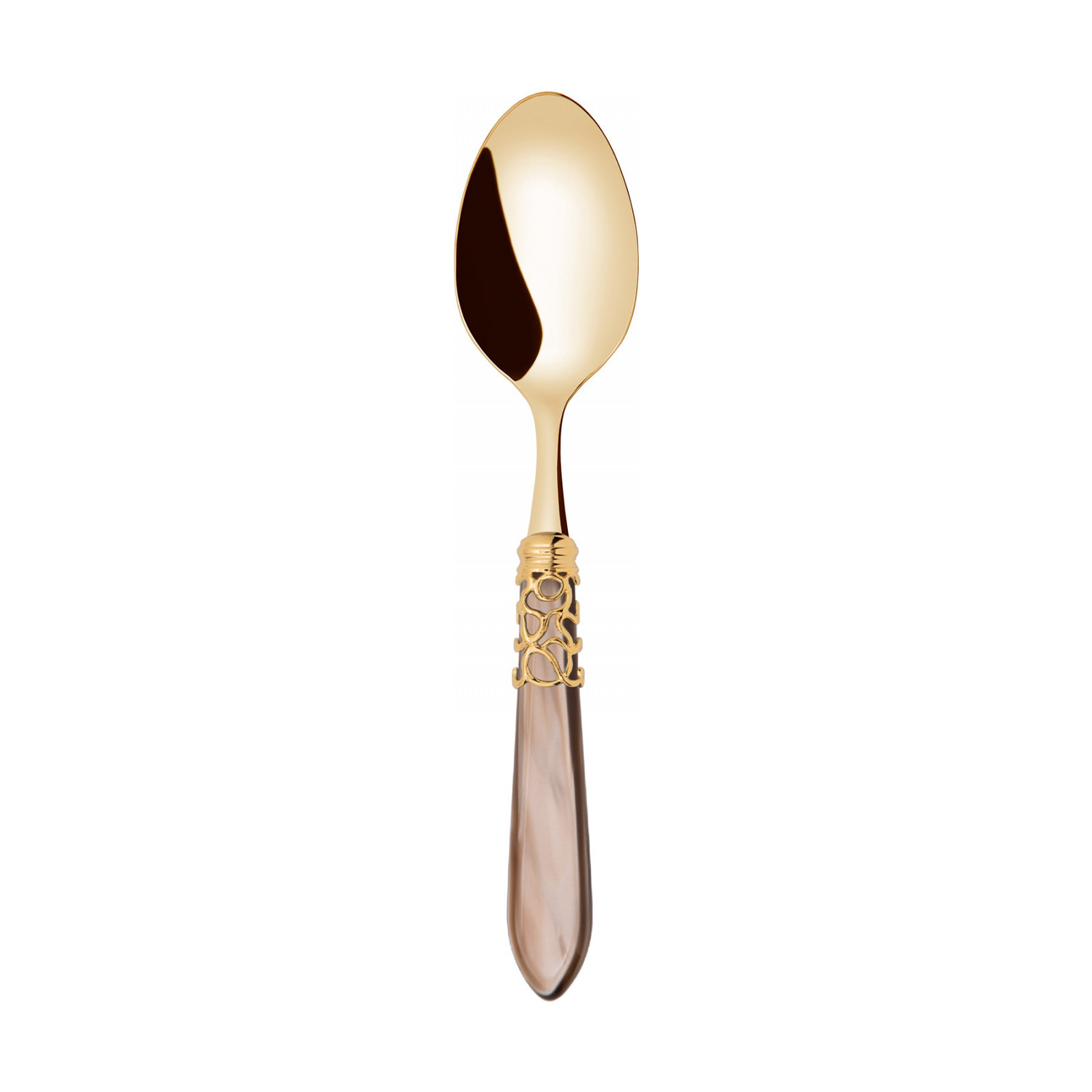 Choose the Melody Gold coloured cutlery set to enchant and captivate your guests at the table. Each piece is crafted with meticulous care and attention in gold PVD-coated 18/10 stainless steel. The elegant acrylic handle and a precious ring with a gold finish recalls the intertwined melodic notes of a memorable musical performance.