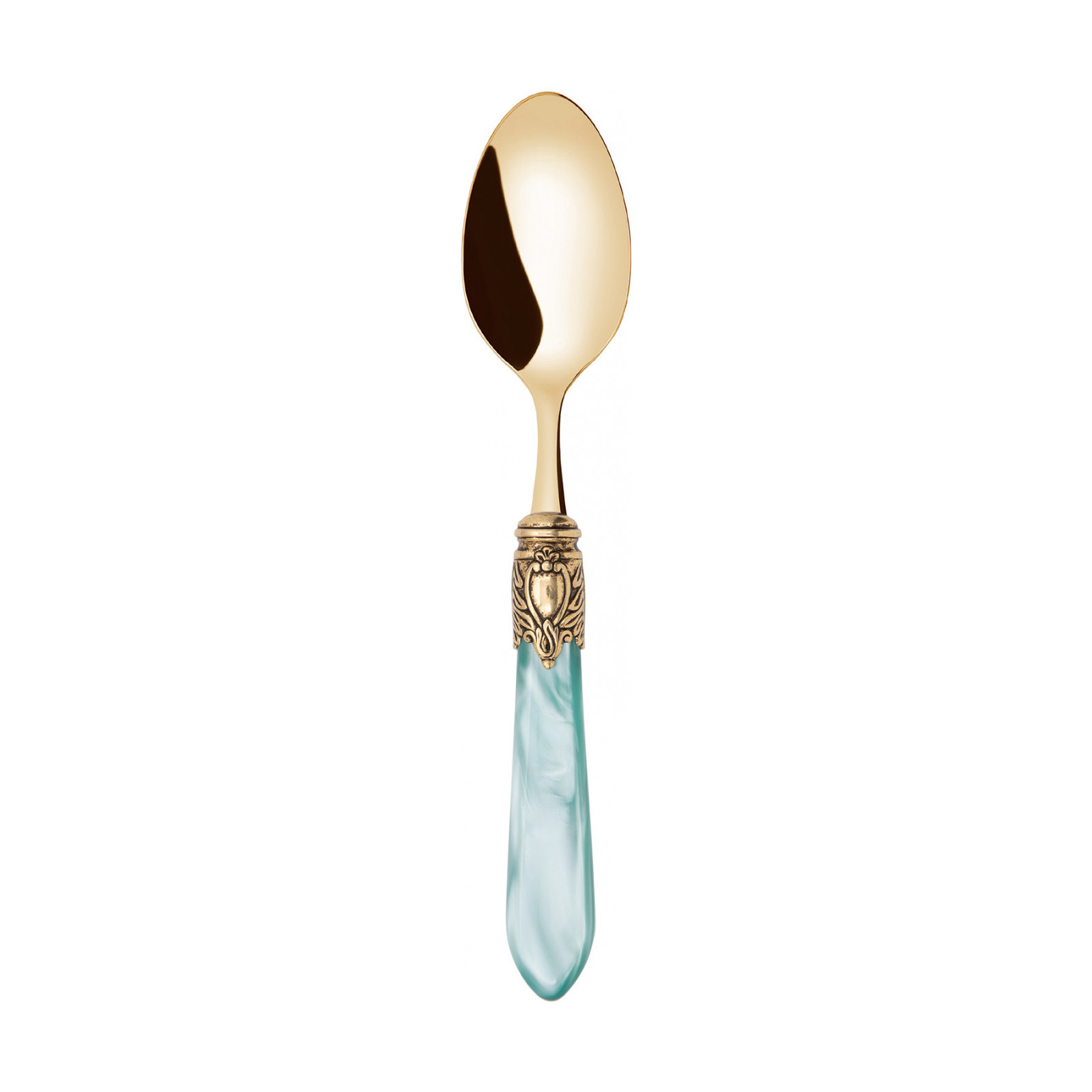 Observe the most important rules of etiquette by bringing Oxford Gold coloured cutlery to the table. To ensure an elegant table with a regal spirit, each piece in the Oxford range is made of gold PVD-coated 18/10 stainless steel, with an acrylic handle embellished with a sophisticated antique gold-finished ring that resembles a noble coat of arms. The Oxford Gold cutlery range is the perfect accessory to ensure an even more elegant and regal table setting.