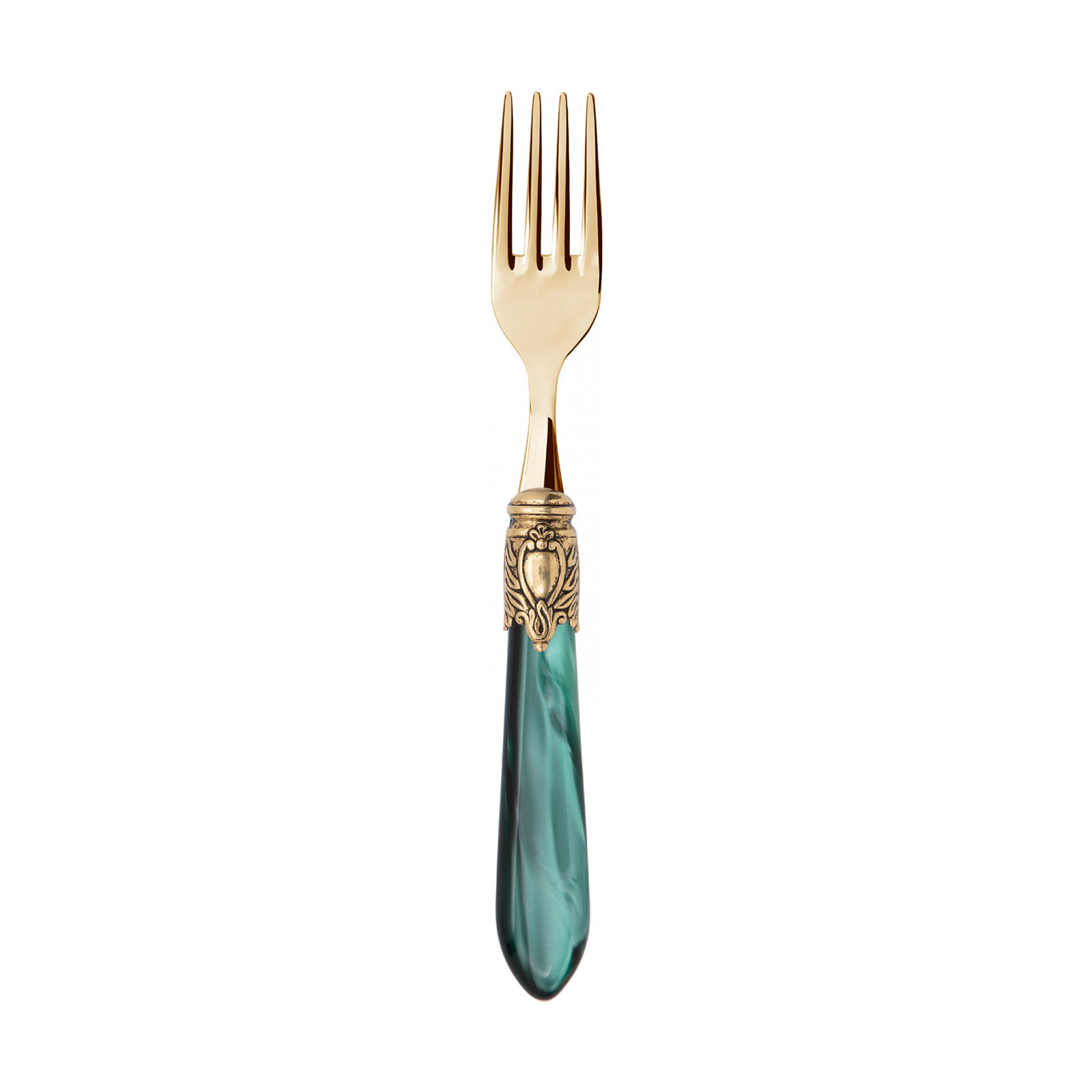 Observe the most important rules of etiquette by bringing Oxford Gold coloured cutlery to the table. To ensure an elegant table with a regal spirit, each piece in the Oxford range is made of gold PVD-coated 18/10 stainless steel, with an acrylic handle embellished with a sophisticated antique gold-finished ring that resembles a noble coat of arms. The Oxford Gold cutlery range is the perfect accessory to ensure an even more elegant and regal table setting.