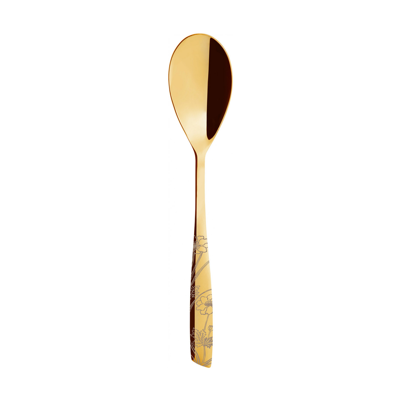 The Riviera Lady Black Gold line of 18/10 stainless steel gold PVD-coated cutlery is enveloped in a refined floral motif, bringing to your table the essence of the garden of wonders from which it takes its inspiration, fashionably enhancing its elegance. This decorated cutlery motif was hand-drawn by the designer Alessandro Parascandolo and engraved on the cutlery pieces. The knife is forged in one piece. This cutlery is dishwasher safe.